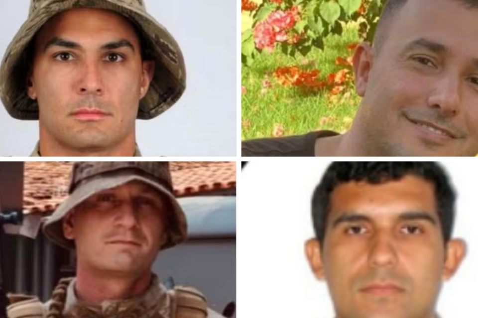 As vítimas são: subtenente Gleidson Rosalen Abib, 1º sargento Liziano José Ribeiro Junior, 3º sargento Anderson Kimberly Dourado de Queiroz e cabo Diego Silva de Freitas.